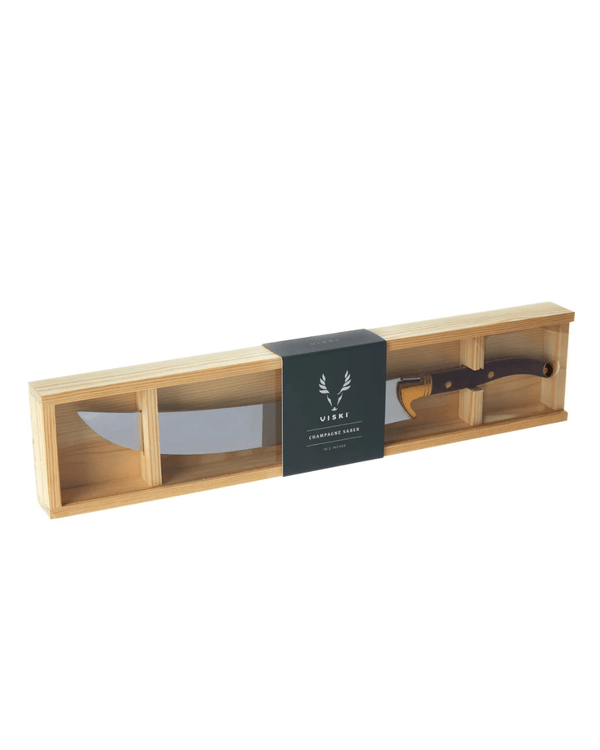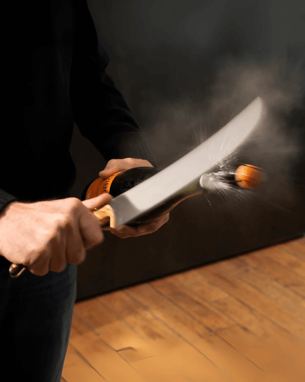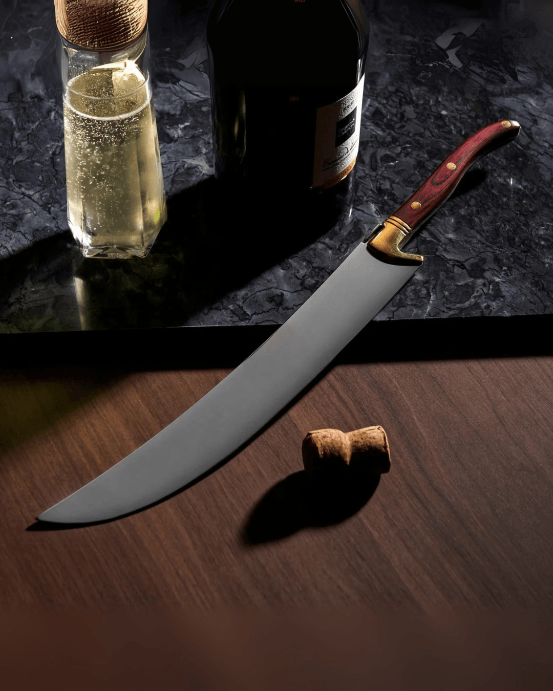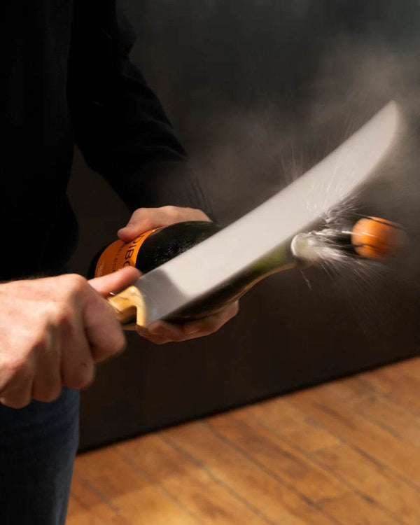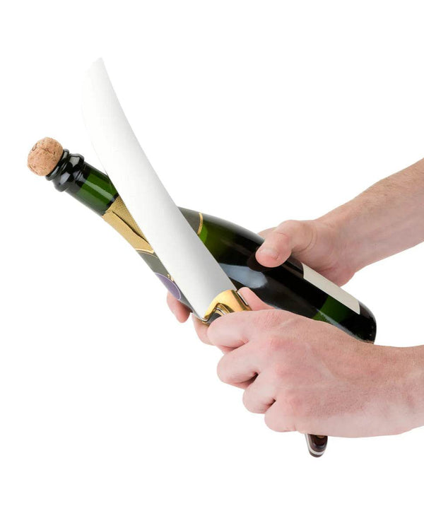 Champagne is meant to be savored--and occasionally sabered. Rooted in 19th century French tradition, the elegantly curved champagne saber slashes through bottles with ease. Blunt blade for safety.