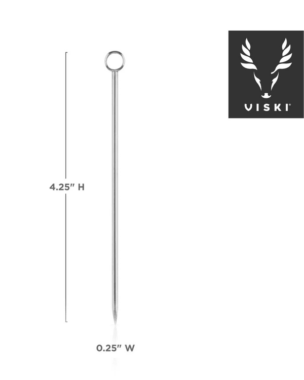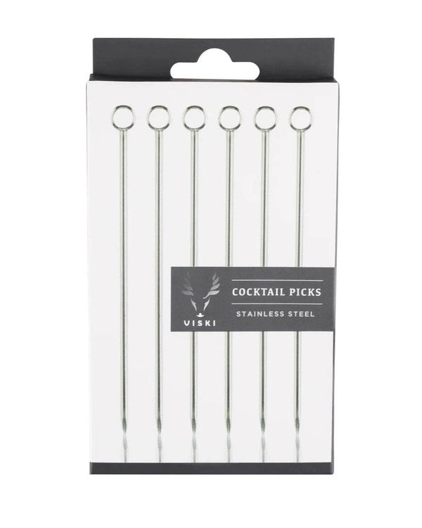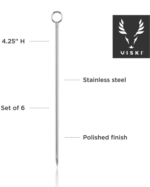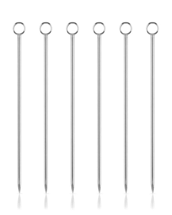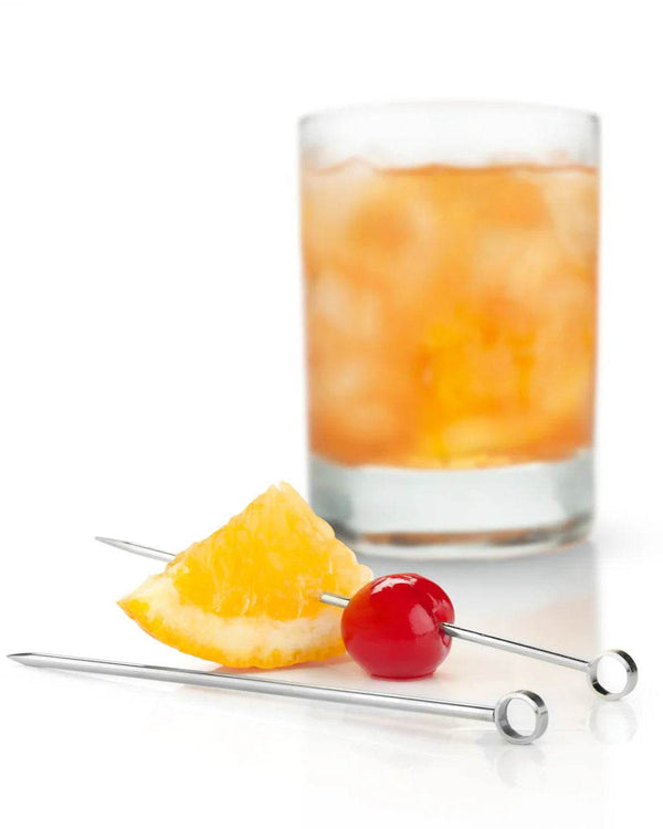 Pick your poison. Each cocktail pick in our classic set of six is finished with a small steel ring; ideal for propping an olive in your martini or a brandied cherry in your Manhattan.