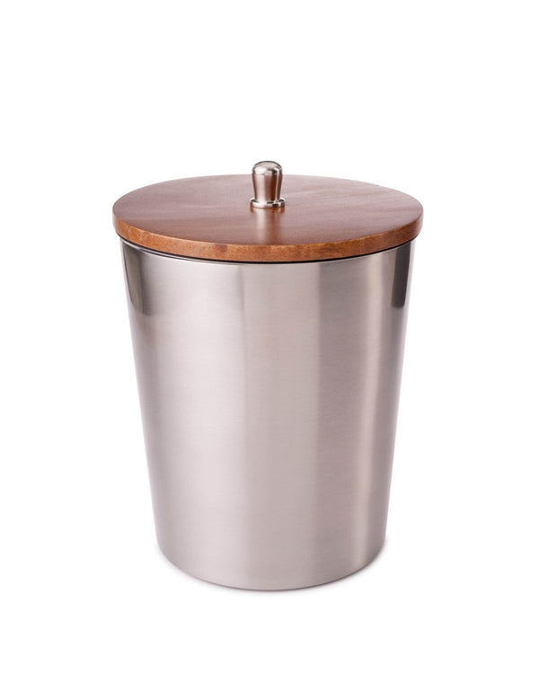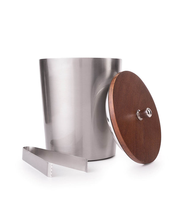 This ice bucket not only looks attractive and elegant but has also been designed to last. Made with premium quality stainless steel and with features like double-wall construction and a vacuum lid that keeps ice cold inside and prevents outer condensation, this ice bucket will be in your bar for many years to come.The wooden lid lends to the modern design which compliments most home décor and promises functionality with style. Comes with matching tongs.