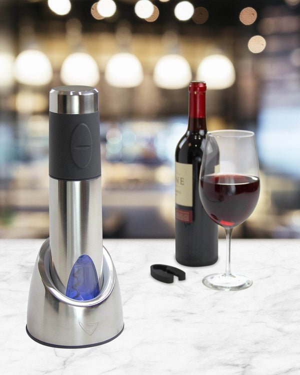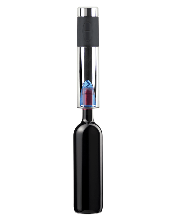 Whether you choose a bottle of fine Cabernet or your favorite Sauvignon Blanc, cork removal has never been easier with this rechargeable wine opener. With the touch of a button, easily remove natural and synthetic corks from wine bottles. One charge will remove up to 120 corks. Illuminated interior lets you see the cork being removed, and color change indicates when charging is necessary. Soft touch material is attractive and comfortable to hold.