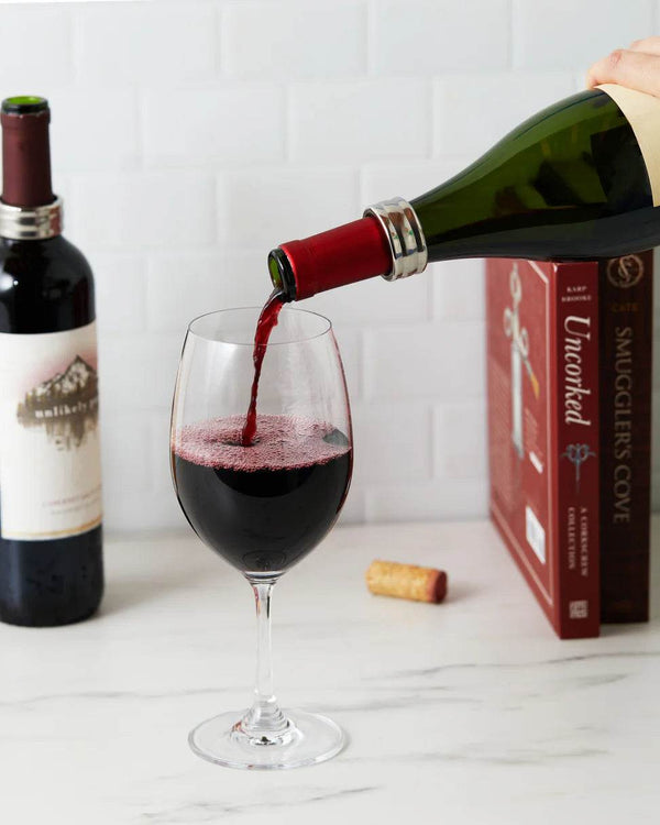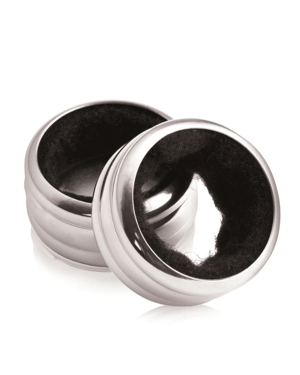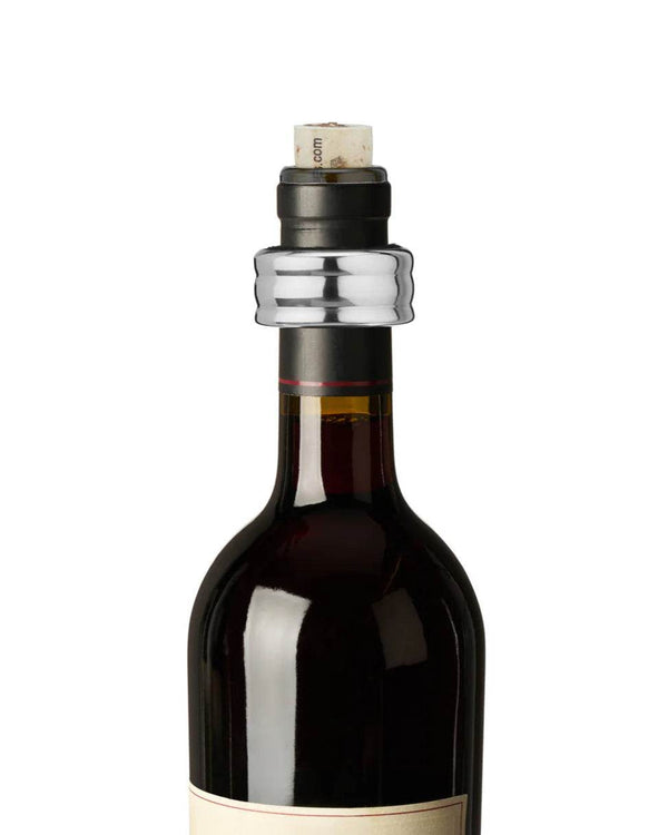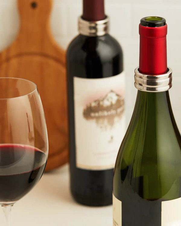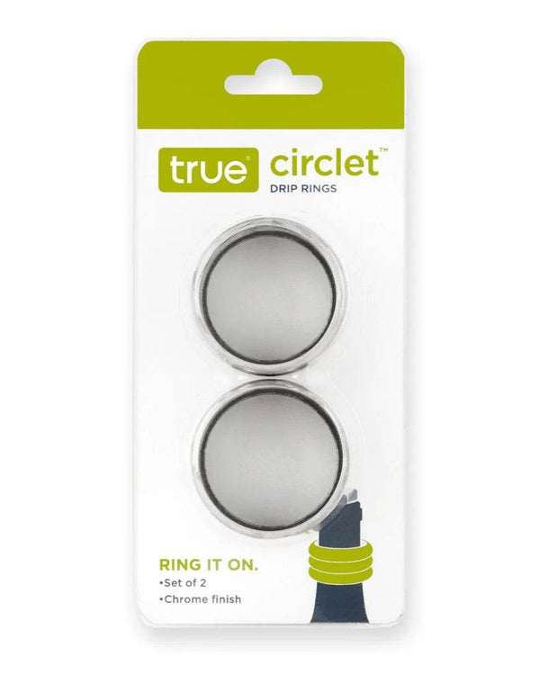 Our chrome-plated Circlet Drip Rings are one of the most effective wine essentials. This pair employs inserts of black velvet to fit snug to any bottle and soak up stray drops, keeping them from staining your clothes, wine label, or furniture.