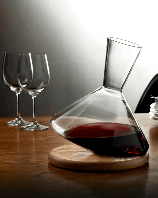 This wine decanter is easily distinguishable as belonging to the NUDE Balance collection thanks to its beautifully revolving silhouette. Crafted from lead-free crystal and complete with a wooden base, this contemporary piece wears its name perfectly.