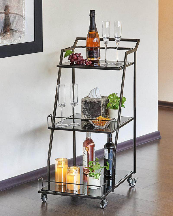 Time for a drink? With this drinks trolley from GlasKart, you’ll always have a tempting tipple close to hand. With a shining metal frame, it has three tiers each topped with black glass. With a handle and on wheels that can be locked; it’s easy to maneuver around wherever you want. What more? It’s a piece of furniture that stands chic wherever it is.