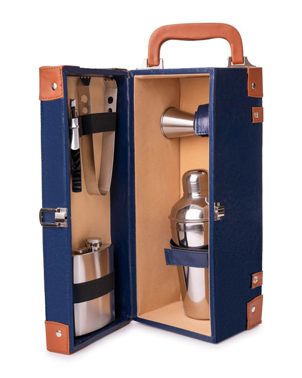 The bar tools gift set has been thoughtfully designed to hold your essential bar items yet be lightweight to carry along. The set is simple and all tools and accessories are strapped in. Lined with suede fabric and fitted with a leather handle and a metal lock gives it a very fine look, making it a perfect gift.