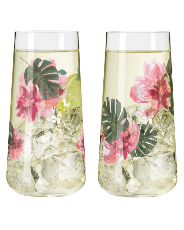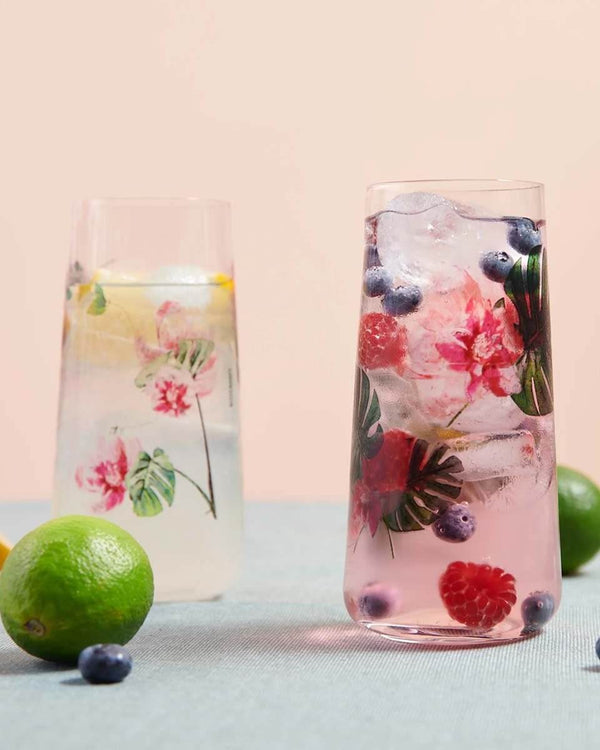 Universally usable for all kinds of drinks, this set of 2 glasses celebrate Spring with floral decor.