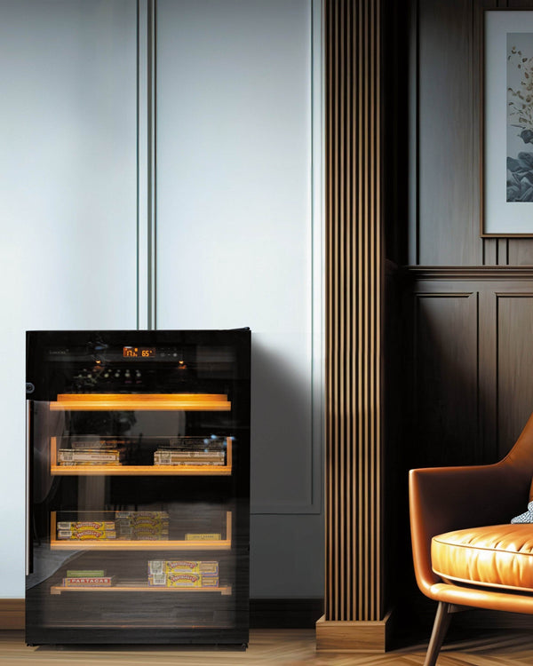 Just like drinking a good wine, smoking a cigar is a special moment. Cigar lovers know To appreciate a cigar, it must be stored in ideal conditions and that the container is as important as the content so that when they come to smoke the cigar, it is a moment of pure pleasure. EuroCave allows you to select and position the different types of storage inside your humidor to suit your requirements. Opt for storage on trays only or combine storage drawer and trays. Depending on the layout and your collection, you can store 700 – 1000 cigars.