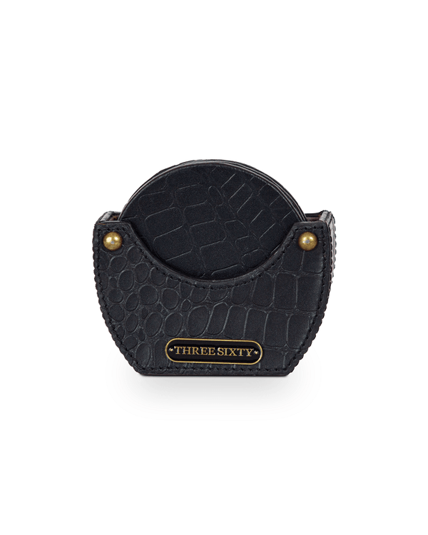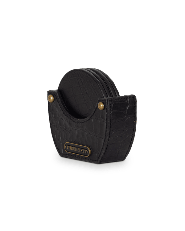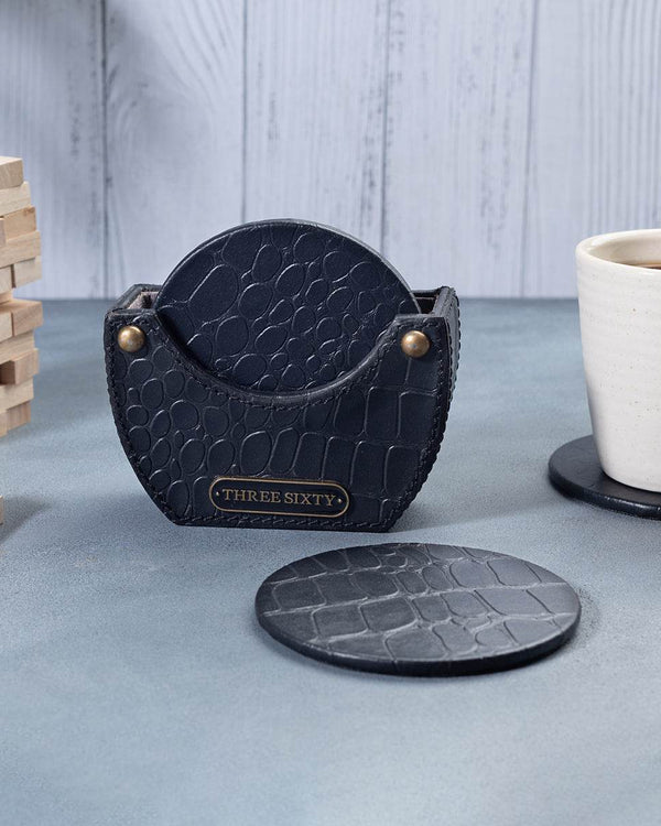 This set of 4 coasters, made of genuine leather with crocodile skin texture adds character to homes or offices tables. The waterproof fabric at the bottom will protect your table from any stains or scratches making them ideal for everyday use. They come with a matching holder so that they can sit neatly when not in use.