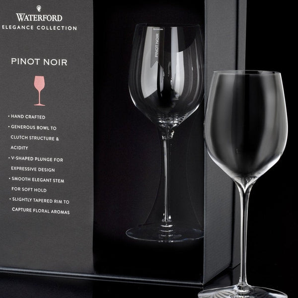The Waterford Elegance Collection is a crowning achievement of craftsmanship and the pinnacle of elite fine wine and spirits enjoyment. The Waterford Elegance Collection features hand-made crystal to suit every wine varietal. Each crystal Elegance stem is uniquely contemporary in design, with a clear, delicate bowl, deep V plunge, crisp rim, pulled stem and flawlessly modern profile.