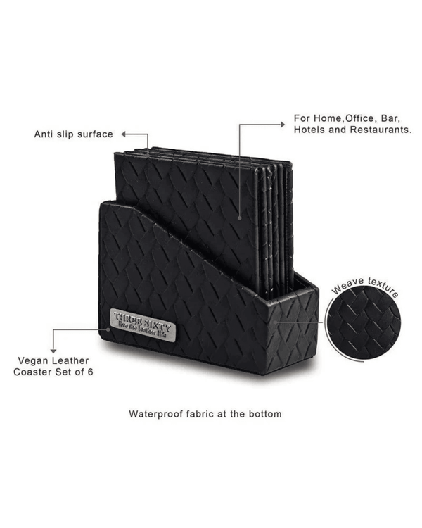 Elegant and stylish, our set of 6 coasters are perfect for both for home and offices. Crafted to be long lasting and refined, they are ideal for everyday use. Made in water resistant recycled leather the set takes care of an elegant display on your tables while entertaining.