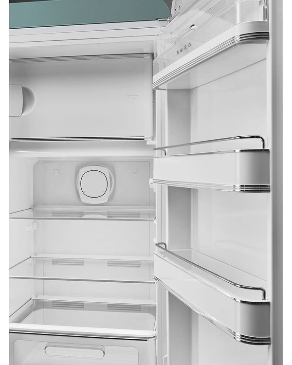 The iconic coloured 50's style design refrigerator with internal freezer compartment, perfect for adding character to the kitchen or living room without sacrificing cooling performance and the convenience of a practical and functional interior.