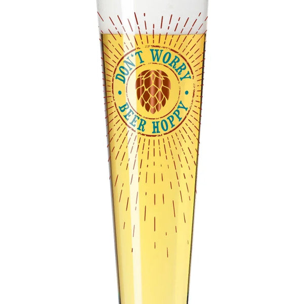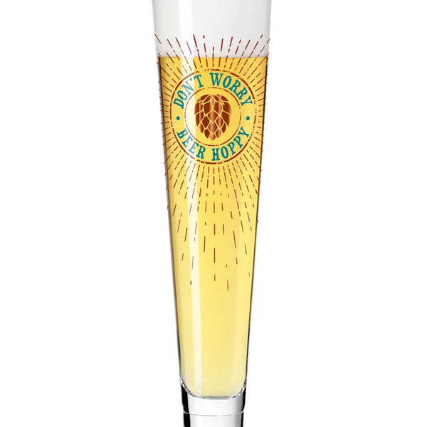 “Don't worry, beer hoppy" shines hoppy-gold from the glass, outshining the occasional cloud of everyday life. Time to enjoy this sunny moment with a cold beer!