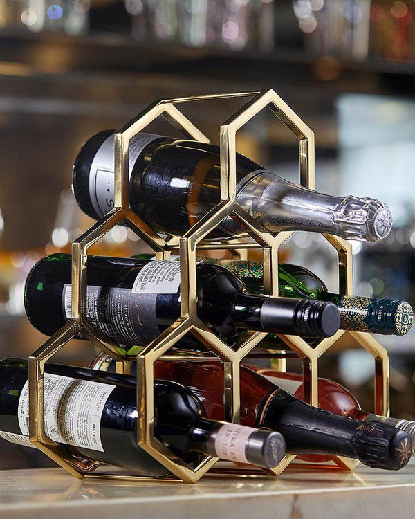 Our fascination for remarkable feats of engineering found in nature shines through yet again with our honeycomb inspired wine racks. Stacked hexagons in our Gold, bronze and graphite colour create the exquisite six bottle table wine rack. Constructed to allow bottle placement ensuring cork stays wet at all times, perfect for the bar counter or console table.