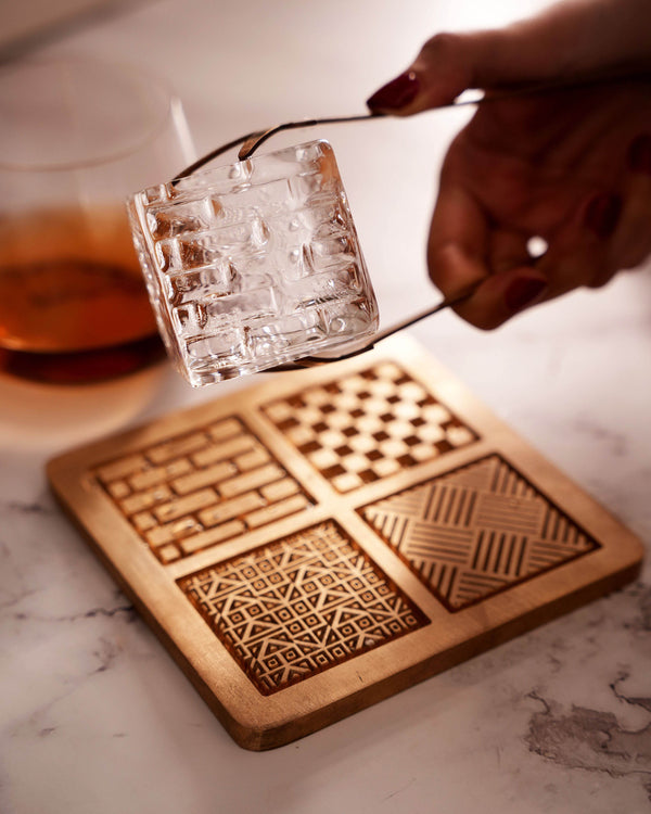 Whether you're hosting a lavish cocktail soiree or a casual gathering with friends, our Brass Ice Stamp is the perfect addition to any occasion. Delight your guests with a unique and creative element, elevating your bartending prowess and ensuring a memorable and enjoyable experience for all. With 4 pattern options and superior quality brass it takes only 5 seconds to imprint the ice. We recommend the use of big sized clear ice cubes for best results. For customisation of pattern, reach out to us.