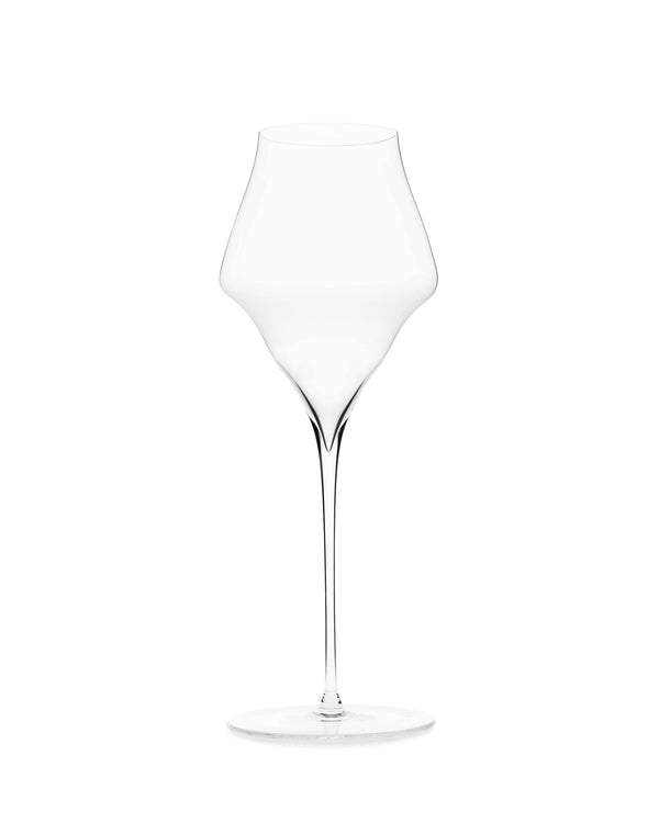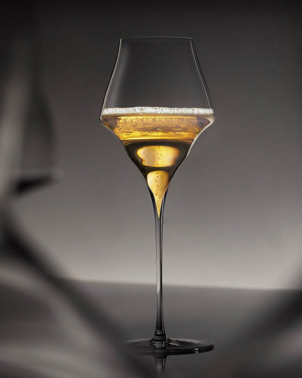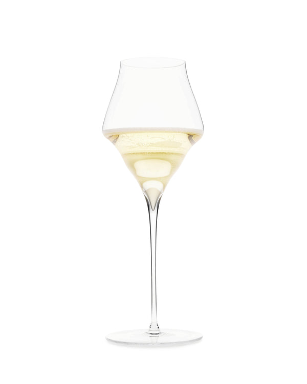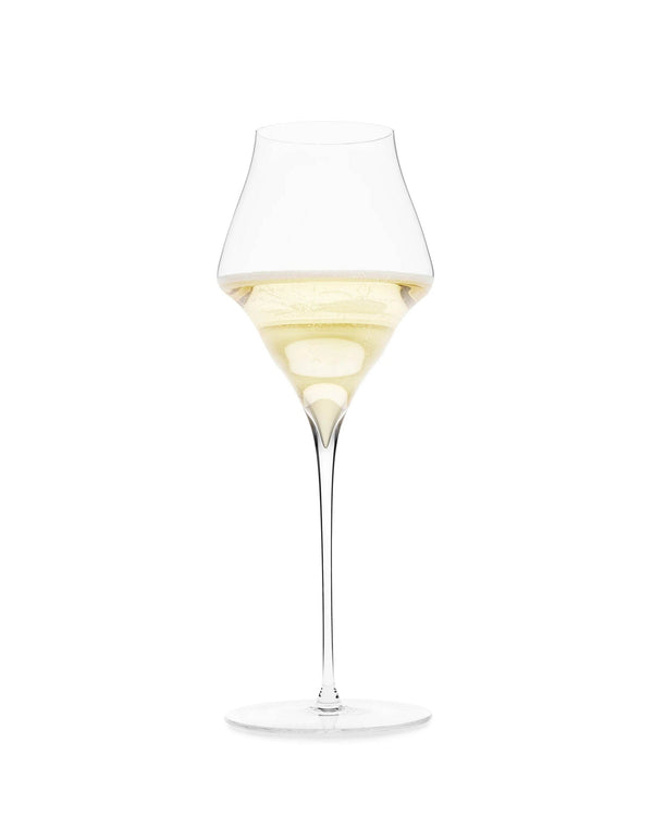 Sparkling wines such as Champagne, Sekt, Franciacorta and Cava are often related to a special occasion and deserve an elegant glass that allows them to shine. This glass impresses through its unusual shape and lies perfectly balanced in the hand. The same surface area as the universal wine glass and its deeply pointed tip at the bottom of the bowl serve to highlight the fine mousse of mature champagnes as well as the gentle perlage of other sparkling wines. The narrowing towards the rim of the mouth promotes the richness of the bouquet and transports it in a focused manner towards the nose. Dessert wines also benefit from the shape of this unique glass. Let festive moments last forever!