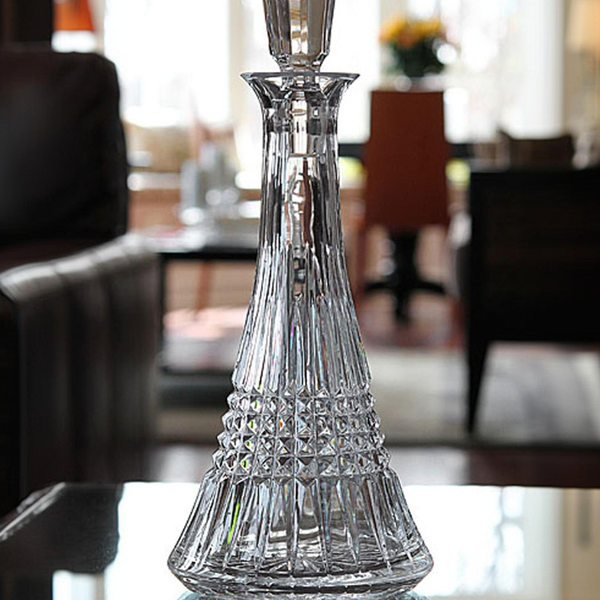 The Lismore Diamond pattern is a strikingly modern reinvention of the Waterford classic: characterized by intricate diamond cuts rendered in radiant fine crystal. The clarity of this radiant Diamond Decanter ensures that the rich color of its contents is highlighted beautifully: serving as a feast for the eye as well as the palette.