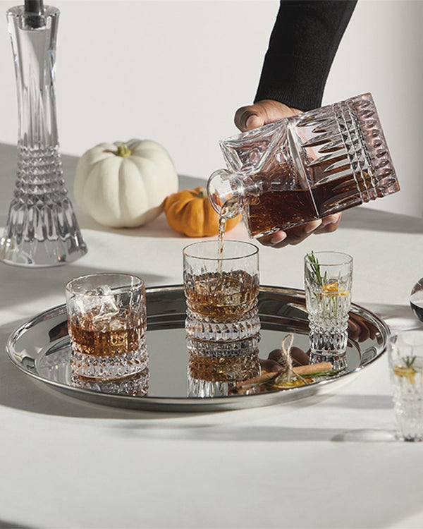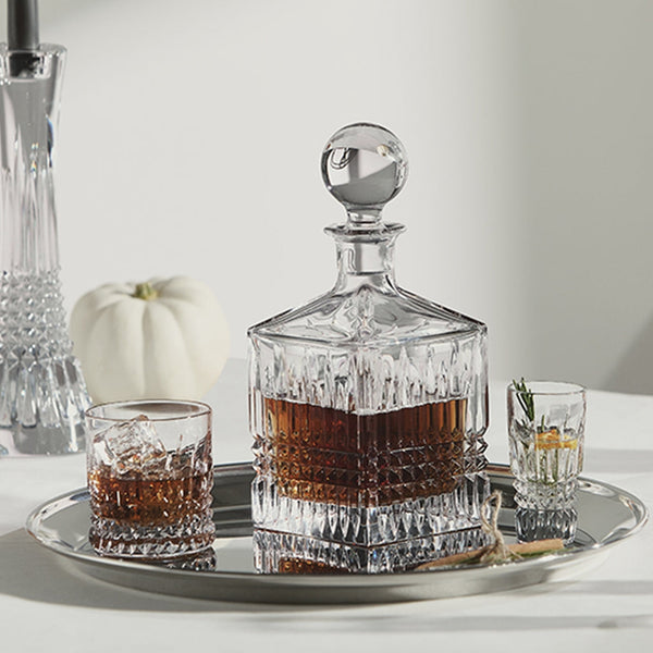 Place your favorite whisky, brandy or bourbon onto a crystal pedestal with this Lismore Diamond Square Decanter and transform your tipple into a feast for your eyes as well as your palette. Beautifully crafted from fine crystal, the unrivalled clarity of this decanter elevates the rich, amber hues of any single malt or blended whisky, producing a stunning spectacle for both you and guests to enjoy. Intricately adorned with the iconic upright and ring cuts of our contemporary Lismore Diamond pattern, this decanter is a strikingly modern addition to your home bar or liquor cabinet.