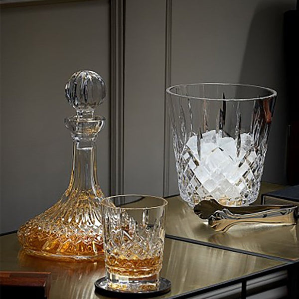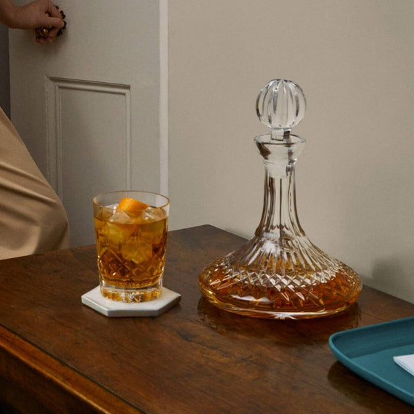 Elevate the aesthetics of your favorite whisky or brandy with this Lismore Ships Decanter and produce a striking visual for you and your guests to enjoy. Expertly crafted from our fine crystal, this stunning decanter is generously proportioned with a comforting weight so that you can pour yours and your guests’ drinks with confidence. Beautifully adorned with the signature diamond and wedge cuts of our classic Lismore pattern, this charming crystal decanter is a luxury addition to any home bar, drinks trolley or liquor cabinet and the perfect gift for a connoisseur.