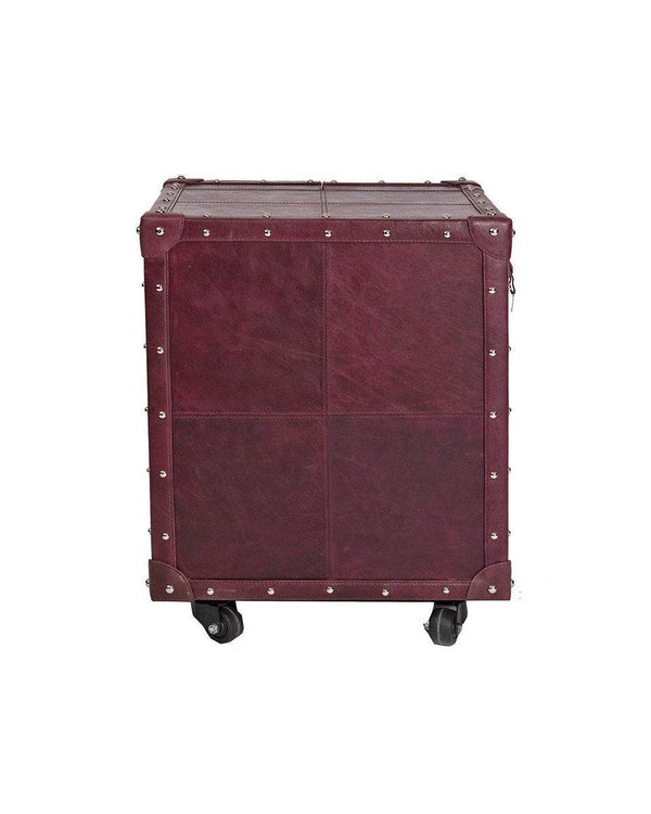 Secondary Material- MDF body frame, faux suede inner lining, antique brass metal hardware, stainless steel casters, steel frame, PP wheels