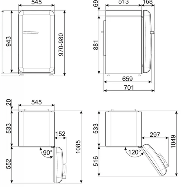 Dimensions - Width: 54.5cm; Height: 97cm; Depth: 65.9cm