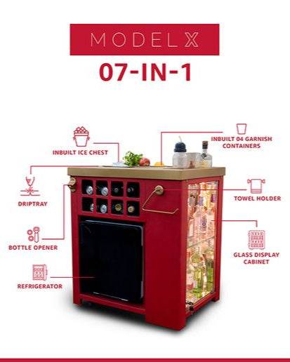 Model X also doubles up as a cocktail station for those evening drinks with a small ice chest and a drip tray. Has a mirror display that can stock upto 20 bottles of alcohol