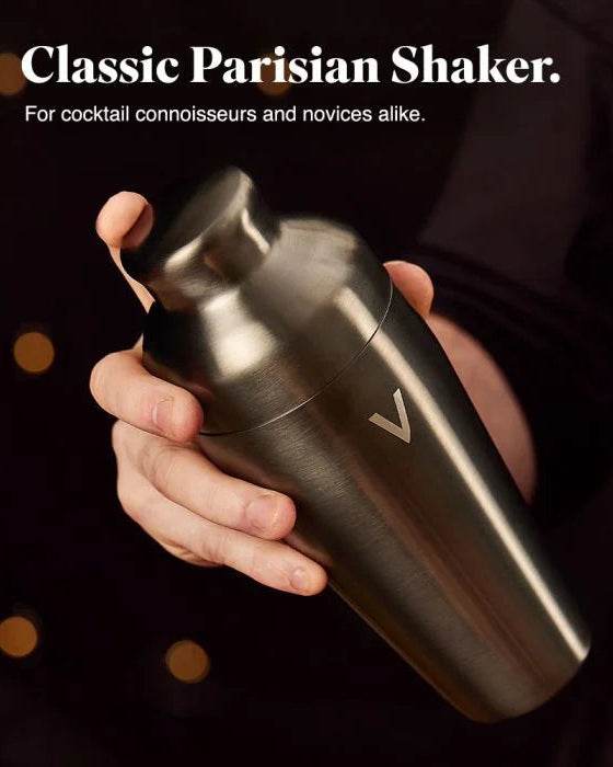Contents- 1 parisian shaker, 1 bar spoon, 1 muddler, 1 jigger, 1 strainer, 1 pourer and 1 recipe guide
