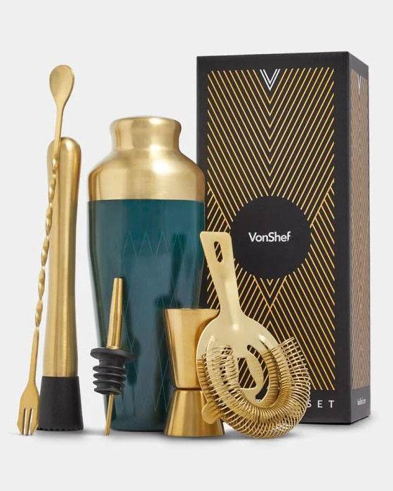 Parisian Cocktail Shaker Set, Green & Gold