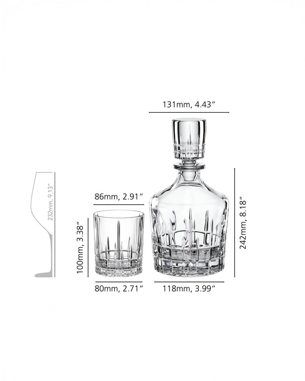 The Whisky Set includes 2 Whisky tumblers and a matching Whisky decanter with a captivating profile. Unique and eye-catching, this set makes the perfect gift for a whisky lover looking to take their favorite spirit to the next level. The Perfect Serve Collection bar glasses are expertly sized to accommodate every cocktail, whether classic, inventive, or whimsical, so now you too can bring a little bit of bar culture into your home.