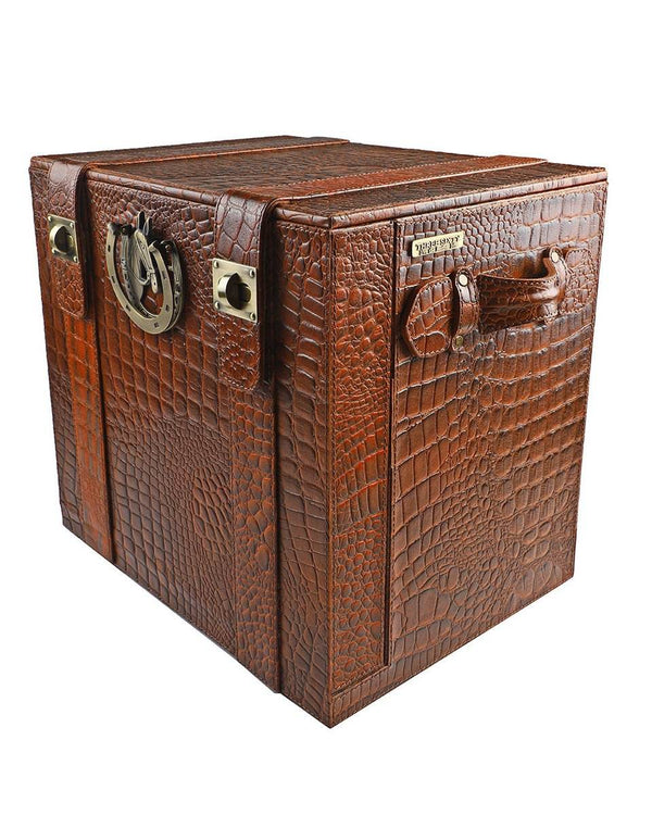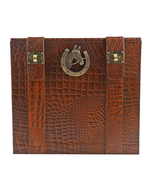 Material- Genuine leather with hard fibreboard interior, faux suede lining, and antique brass hardware.