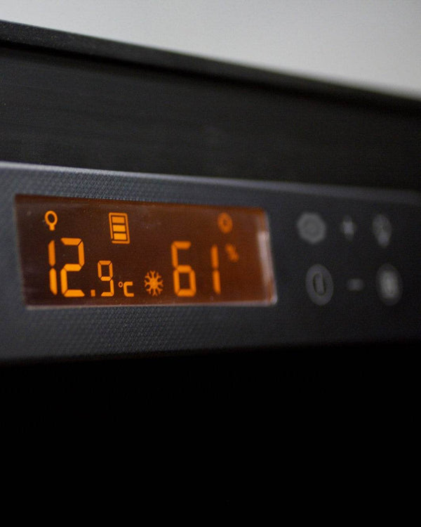 Design: 4 door options(black glass, full glass, black piano, black glass with handle), Removable glass finish handle, Central lock, LED screen with touch sensitive display, Amber screen display and interior lighting