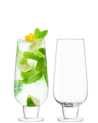 Set of two mouth-blown mixer glasses with short conical stems and rounded bowls. Ideal for serving long rum cocktails.
