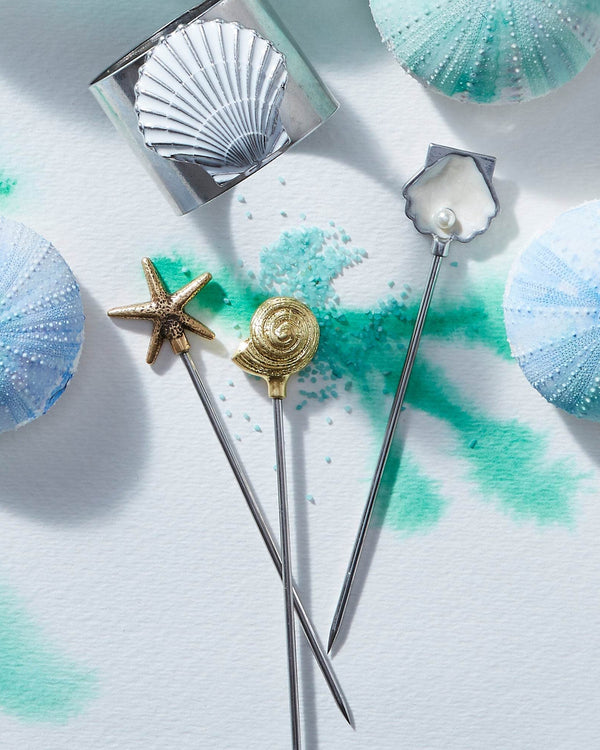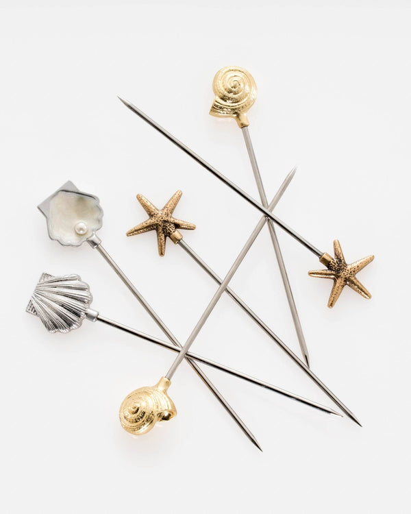 Perfect for any beach side party, use these gold and silver shell cocktail picks for fruit, hors d'oeuvres, seafood nibbles, cheese, or fruity cocktail garnish! Endless ideas to make these cocktail picks useful forever!