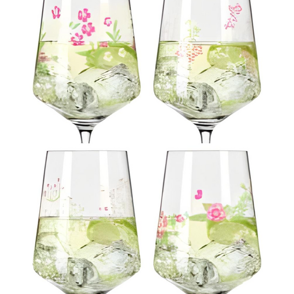 The aperitif glass set is dedicated to the essence of the sun and lets the sweet character of the elderflower shine through with playful illustrations. With fresh, elegant motifs, these glasses can be used for any spritzers, cocktails, aperitifs, wine, spritzer, punch or even juice. A must have handy glass that compliments anything you want to serve.