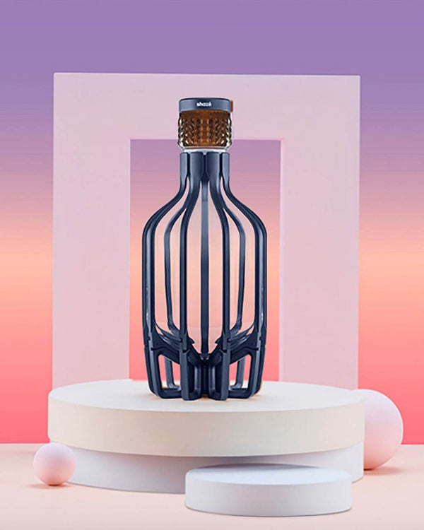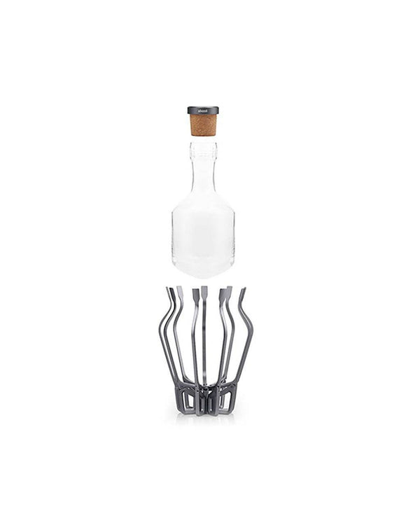 ou know the hosting game is won when guests sneak covert glances at your barware. Heck, everyone has a whisky decanter, but how about one that combines theatrical appeal with functional efficiency? Hand-blown, lead-free crystal glass forms the bold contours of the decanter. The unique conical base is complete only with its sturdy fins preventing your whisky from straying. A cork stopper perfectly fits into the neck, while the metal finish atop it adds to the contrasting appeal against clear glass. The weight-balance mechanism allows the decanter to seamlessly enter and exit the cage with synchronous movement. With its anodized gold finish, the sturdy aluminium base and fins are crafted for futuristic appeal. We’ve found the sweet spot between smooth edges and riveted contours.