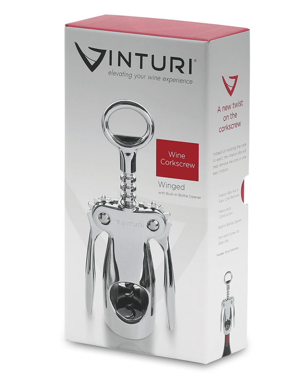 The Winged Wine Opener is elegant enough for formal entertaining, yet durable enough for everyday use. With a simple turning motion, the arms are raised to easily release the cork. Designed for versatility, the handle also serves as a built-in bottle opener.