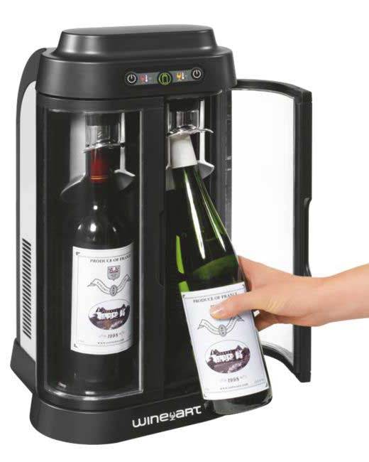 The exclusive Wine Art system has two separate compartments, allowing you to bring 2 bottles of red and/or white to the correct serving temperature.