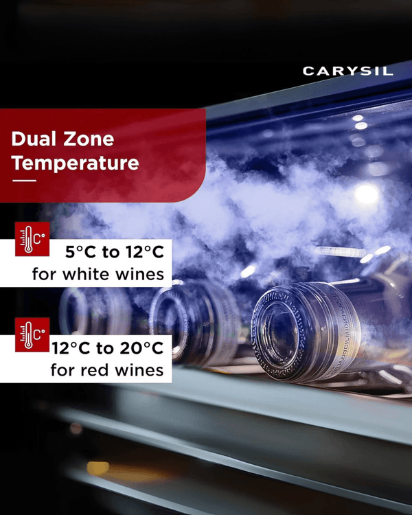 Dual Zone – 5 to 12 degrees for White Wine; 12 to 20 degrees for Red Wine