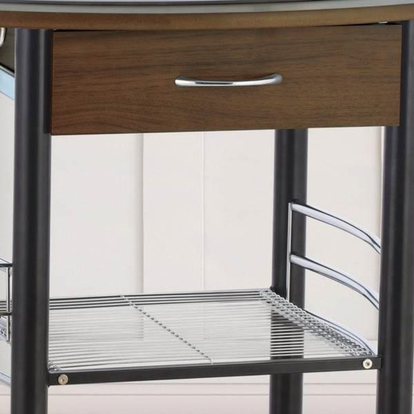 This 4-tier wooden serving trolley has ample space for bottles and accessories. It has a stylish, sleek design to match the sophisticated interior and an oval-shaped black tempered glass. The rust-proof metal frame in a chrome finish gives it an attractive look.